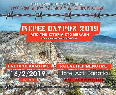 Για πρώτη φορά, μετά από πρόσκληση της Ιεράς Μητροπόλεως Αλεξανδρουπόλεως και του Ιερού Ναού Αγίου Βασιλείου, οι “ΜΕΡΕΣ ΟΧΥΡΩΝ” θα πραγματοποιηθούν και στην Θράκη, όπου βρίσκονται δύο από τα 21 θρυλικά οχυρά της “Γραμμής Μεταξά”. Του Εχίνου στην Ξάνθη και της Νυμφαίας στη ροδόπη.