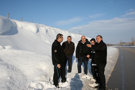 Στη φωτογραφία (στο μέσο) οι κ. Μέτιος και Πέτροβιτς, όταν σχεδόν είχε κλείσει από τα χιόνια ο κάθετος άξονας του Έβρου στο ύψος της Θυρέας. Προφανώς τώρα που έλιωσαν τα χιόνια, ο πάγος μεταξύ τους έσπασε. . .