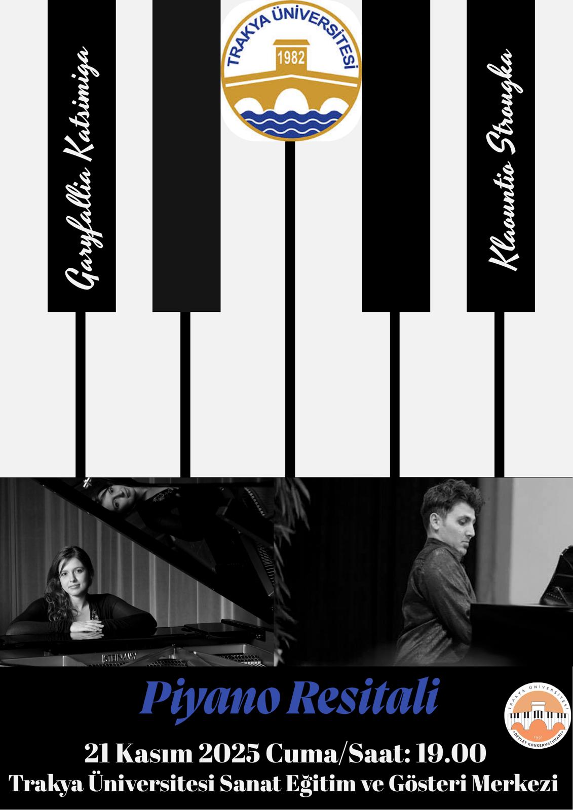Οι πιανίστες Γαρυφαλλιά Κατσιμίγα από την Κομοτηνή και Κλαούντιο Στρούγκα από την Θεσσαλονίκη θα δώσουν ρεσιτάλ πιάνου για τέσσερα χέρια στο κέντρο Καλλιτεχνικής Εκπαίδευσης και Ερμηνείας του Πανεπιστημίου Trakya στην Αδριανούπολη, την προσεχή Παρασκευή 21 Νοεμβρίου 2025, στις 19.00 το απόγευμα.