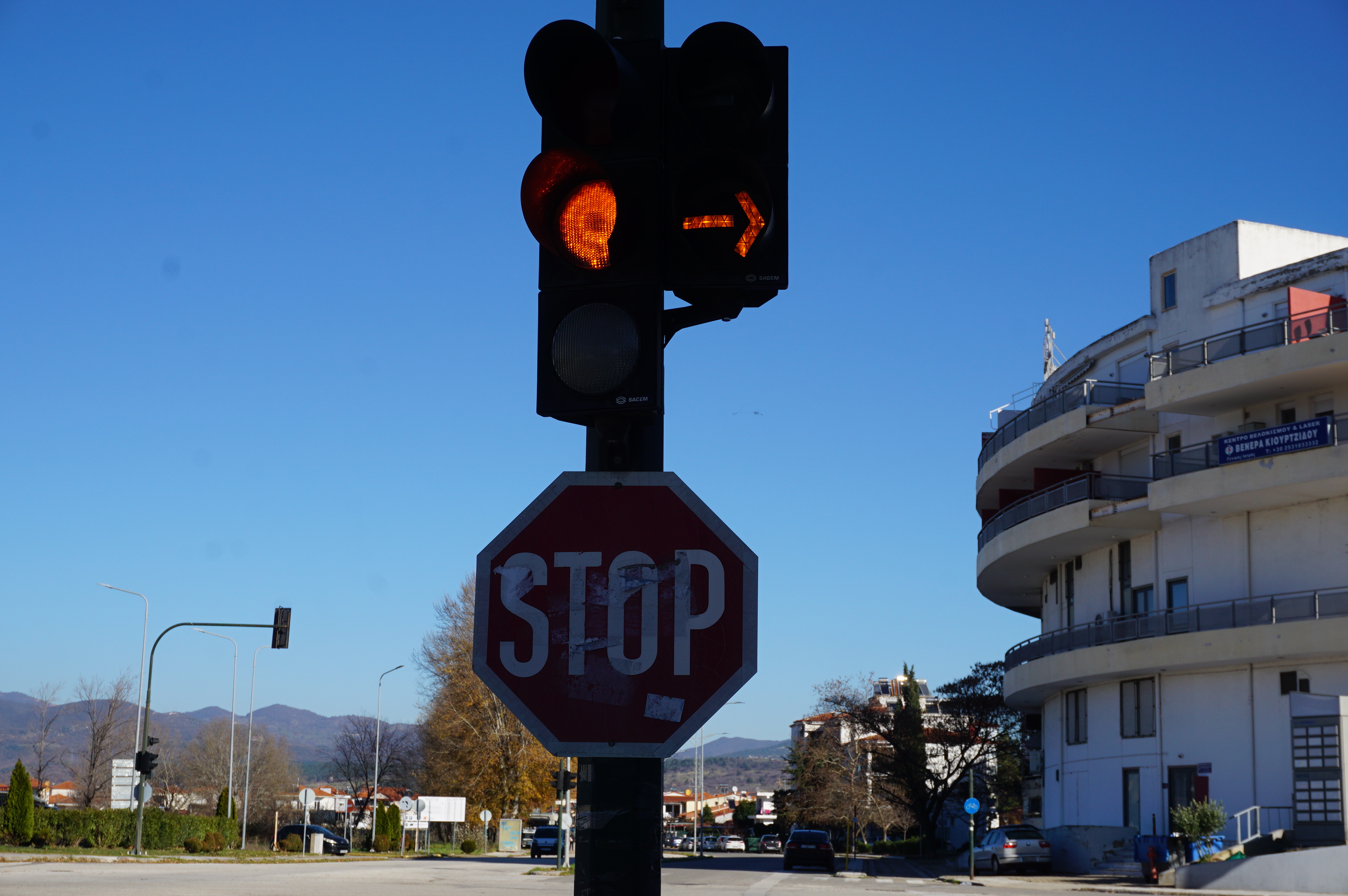 Οι φωτεινοί σηματοδότες στον κόμβο του εμπορικού κέντρου Kosmopolis, στη διασταύρωση της λεωφόρου Εθνικής Αντιστάσεως και της οδού Γεωργίου Παπανδρέου, έχουν τεθεί εκτός λειτουργίας λόγω τεχνικής βλάβης στον κεντρικό ελεγκτή των σηματοδοτών και βρίσκονται σε λειτουργία προειδοποιητικού παλλόμενου (χρώματος πορτοκαλί).