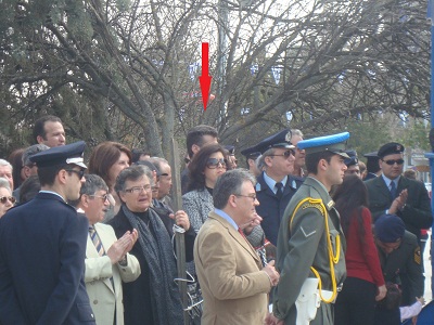 Δίπλα στην εξέδρα των επισήμων κι όχι πάνω σ’ αυτή βρίσκονταν κατά τη διάρκεια της παρέλασης ο υποψήφιος δήμαρχος Ορεστιάδας Βασίλης Μαυρίδης.