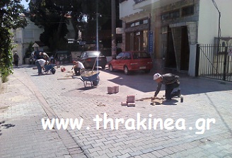 Νωρίς νωρίς τη Δευτέρα έπιασαν δουλειά εργάτες στην πόλη του Διδυμοτείχου προκειμένου να μπαλώσουν πλακόστρωτο δρόμο.