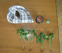 Σε έρευνα που ακολούθησε στο σπίτι του, βρέθηκαν και κατασχέθηκαν τέσσερα φυτά κάνναβης, ύψους από 10 έως 15 εκατοστών και ένας ξύλινος τρίφτης.