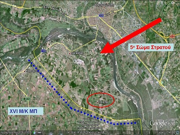 Το περίφημο προγεφύρωμα του Κάραγατς. Η σχετική θέση της αντιαρματικής τάφου απεικονίζεται στον χάρτη, όπως και το κέντρο εκπαίδευσης πλωτών μέσων του Τουρκικού Στρατού στη Μπόζνα.