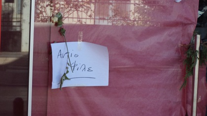 Ένα σημείωμα, ένα λουλούδι. Έξω από το κλειστό κατάστημα του επιχειρηματία που αυτοκτόνησε στην Αλεξανδρούπολη φίλοι αποχαιρετούν.