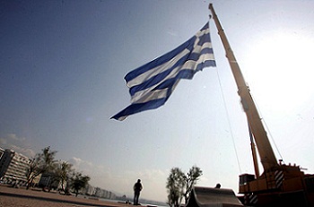 Η μεγαλύτερη ελληνική σημαία που κατασκευάστηκε ποτέ, επιφάνειας 480 τετραγωνικών μέτρων και βάρους… 130 κιλών κυματίζει από σήμερα στο λιμάνι της Θεσσαλονίκης, στο πλαίσιο των εορταστικών εκδηλώσεων για τη συμπλήρωση εκατό χρόνων από την απελευθέρωση της πόλης.