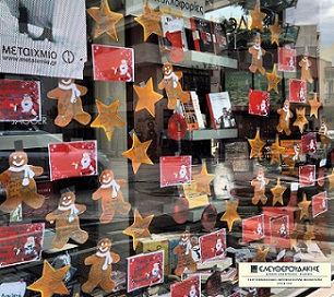 Βοηθήστε μας να στολίσουμε τη βιτρίνα μας γράφοντας τη δική σας ευχή σε χάρτινα στολίδια. Για κάθε ευχή που θα διακοσμεί τη βιτρίνα μας 0,50€