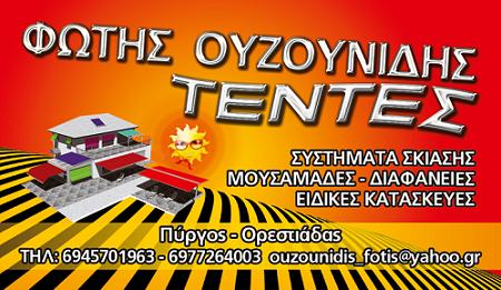 Τέντες –συστήματα σκίασης – μουσαμάδες – διαφάνειες –επισκευές τεντών – ραψίματα- πλύσιμο τέντας – Φώτης Ουζουνίδης.
