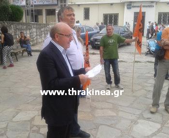 Στη φωτογραφία τον βλέπουμε να διαβάζει κείμενο συμπαράστασης σε συγκέντρωση καθηγητών.