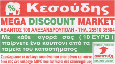 Mega discount market Κεσούδης, στην Άβαντος 108 στην Αλεξανδρούπολη.