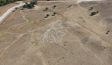 Με τη συμμετοχή είκοσι εθελοντών δημιουργήθηκε το περίγραμμα του αγάλματος σε κάτοψη 50 x 70 μέτρων περίπου. Χρησιμοποιώντας την τεχνική του land art, με πέτρες που μαζεύτηκαν από την γύρω περιοχή, έφτιαξαν το περίγραμμα της Νίκης της Σαμοθράκης πάνω στη γη.