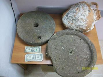 Ένα πήλινο αμφορέα βυζαντινών χρόνων, δύο μυλόλιθους βυζαντινών χρόνων και 32 χαρτονομίσματα του ενός δολαρίου αμφιβόλου γνησιότητας, είχαν στο σπίτι τους στον Ήφαιστο Ροδόπης, ένας 24χρονος κι ένας 71χρονος. Οι δύο άνδρες συνελήφθησαν και κατηγορούνται για παραβάσεις του νόμου περί προστασίας των αρχαιοτήτων και εν γένει της πολιτιστικής κληρονομιάς και παραχάραξη.