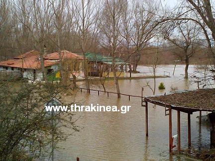 Στη φωτογραφία το κλειστό αναψυκτήριο των Καστανεών κυκλωμένο από τα νερά του Άρδα.