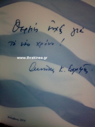 Η ευχετήρια κάρτα του Αντώνη Σαμαρά έγραψε: «θερμές ευχές για το νέο χρόνο!».