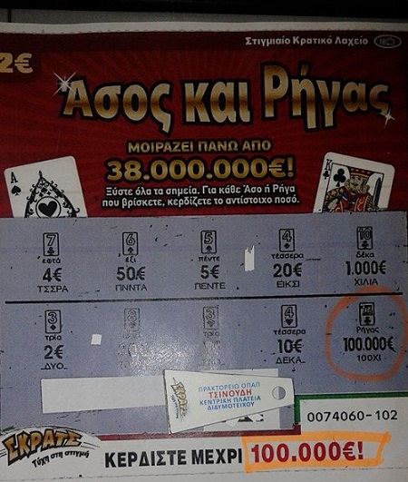Δείτε το τυχερό δελτίο του ΣΚΡΑΤΣ που παίχτηκε στο πρακτορείο ΟΠΑΠ Τσινούρη – Μπαμπούρα το οποίο βρίσκεται στην κεντρική πλατεία Διδυμοτείχου και βγήκε πλούσιος.