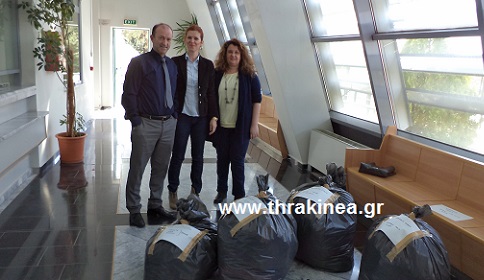 Ο διευθυντής του τελωνείου Ορεστιάδας Χρήστος Νάκος και τελωνειακοί υπάλληλοι, οι οποίοι συμμετείχαν στην καταγραφή των προϊόντων.