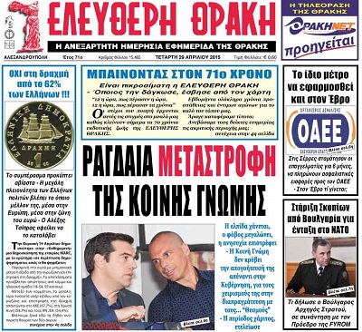 Φτάνοντας στην αυγή του 2015 όπου η εφημερίδα έκλεισε πλέον 70 ολόκληρα χρόνια εκδοτικής ζωής, βρήκε τη χώρα μας να οδεύει για τις εκλογές της 25ης Ιανουαρίου που έφεραν για πρώτη φορά κυβέρνηση αριστεράς με τον ΣΥΡΙΖΑ.